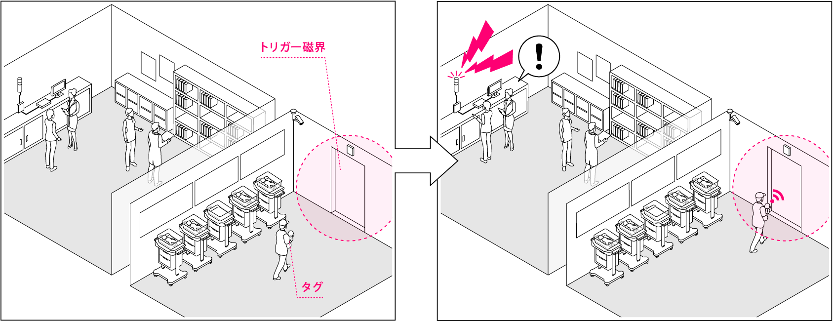 マトリックスのRFID製品は、パッシブタグよりも通信距離が長く、アクティブタグよりも電池の消費量が少ないセミアクティブ方式です。レーススポーツのタイム計測技術をベースとした、高精度で信頼性の高いシステムです。さらに独自のトリガーID技術で位置検知精度が高く、電波の反射・混信による誤作動のリスクがほとんどありません。